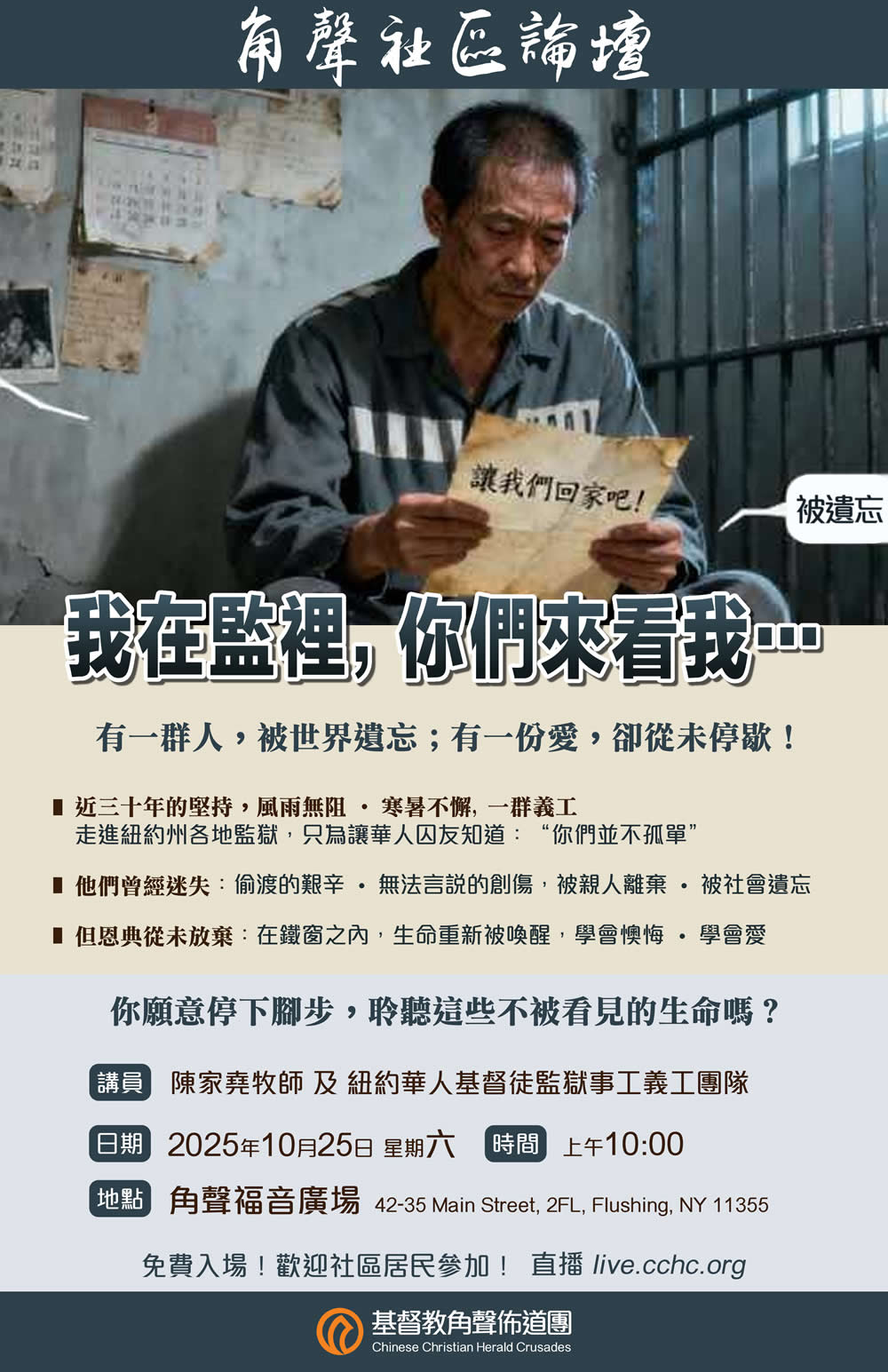 近三十年來,一群默默服事的義工,風雨無阻地走進紐約州各地監獄,只為讓被囚的華人朋友知道:「你們並不孤單。」