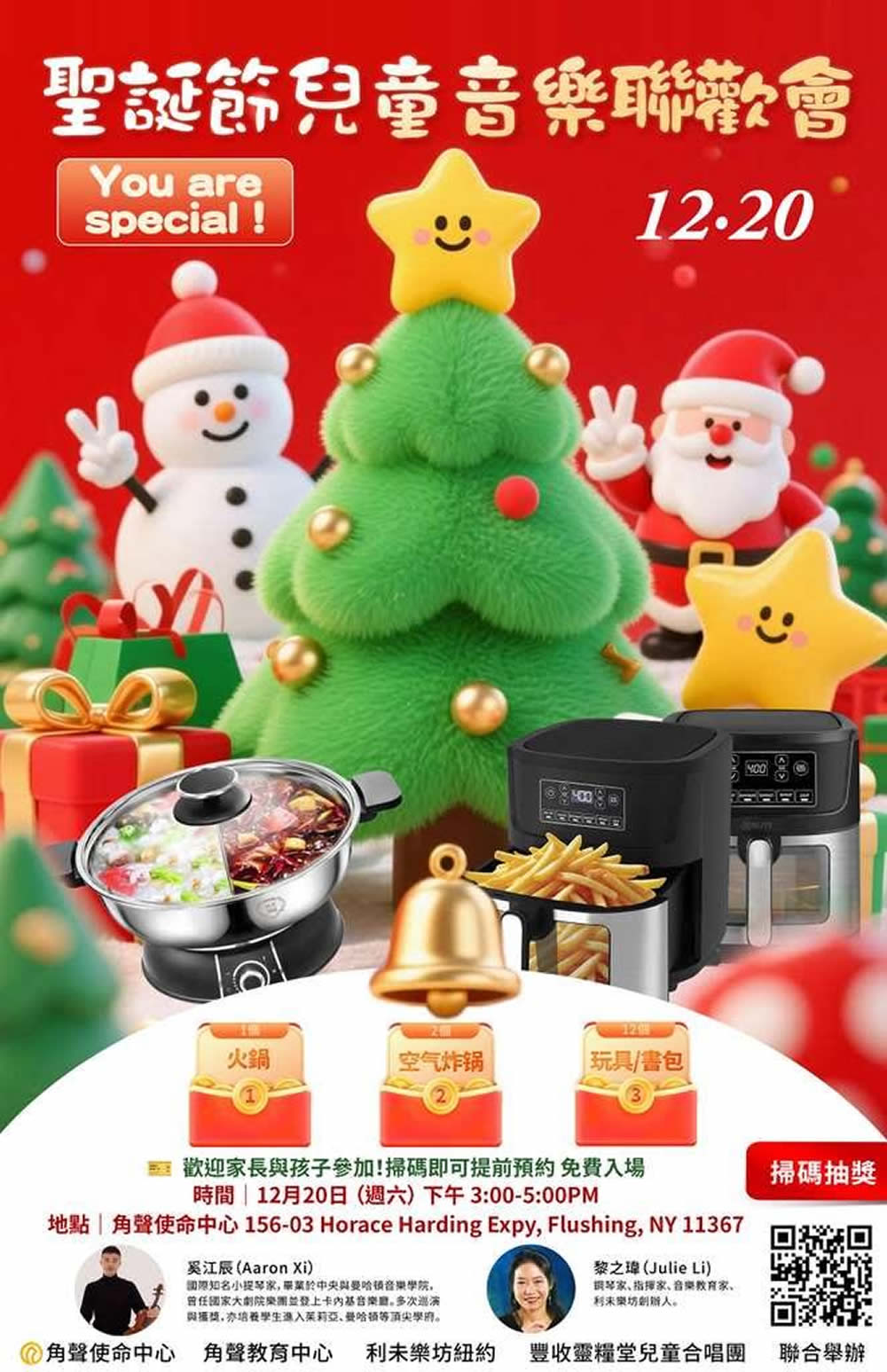 一年一度最溫馨、最熱鬧的聖誕時刻來了!角聲誠意為孩子與家庭預備一場充滿歡笑與驚喜的「聖誕節兒童音樂聯歡會」。現場有活潑可愛的兒童音樂表演、互動環節,以及最受期待的抽獎遊戲,豐富獎品為節日再添驚喜。