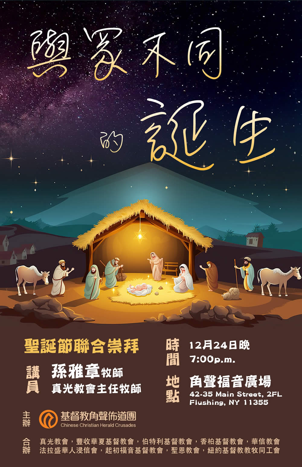 在寧靜的聖誕夜,讓心慢下來,一同走進主降生的故事。由多間教會跨堂會聯合舉辦的「與眾不同的誕生」聖誕節聯合崇拜,邀請你與家人朋友一同聚集,在敬拜、信息與聖誕信息中,再次看見主耶穌降生所帶來的盼望與平安。