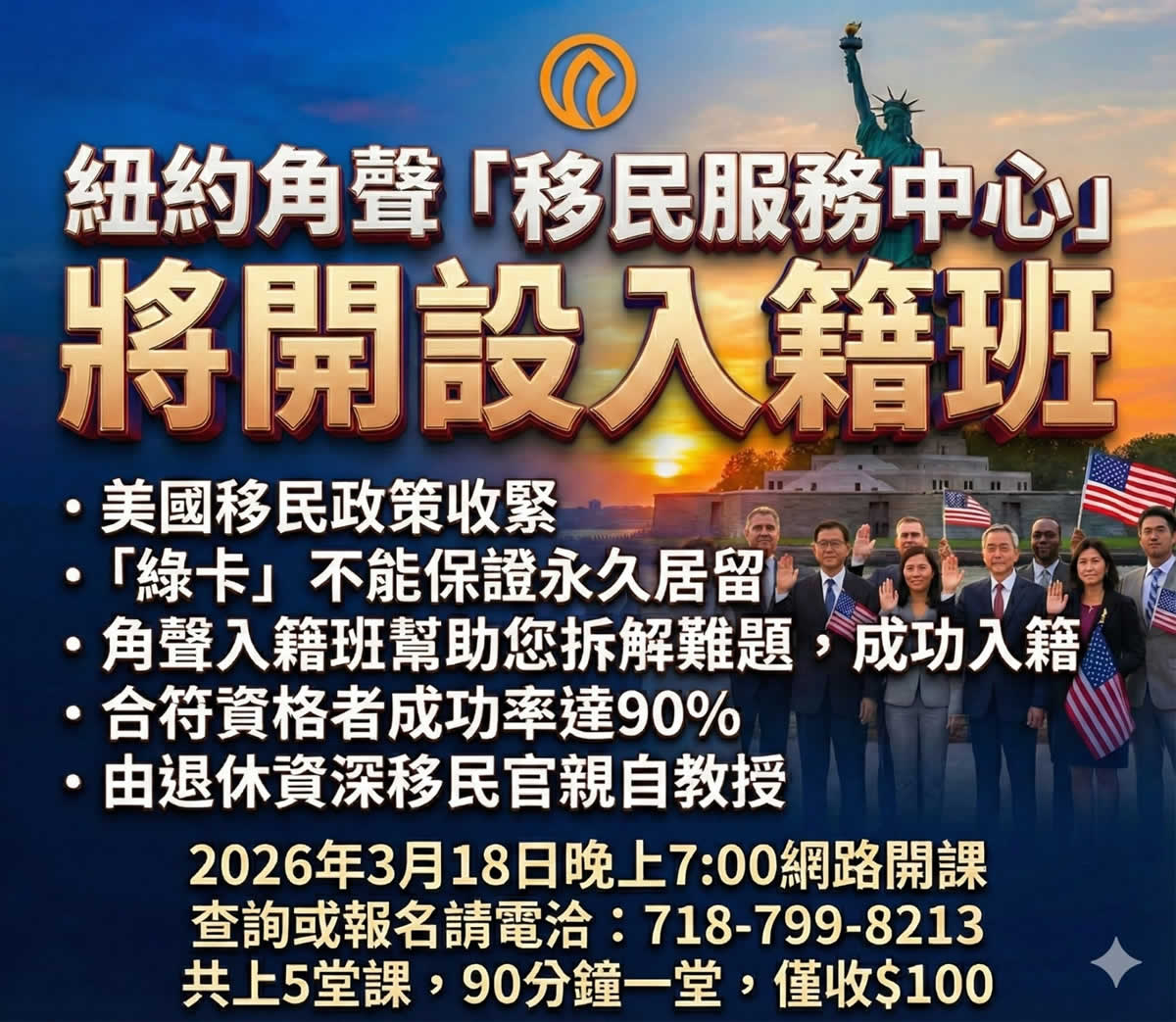 美國移民政策持續收緊,綠卡不再等於永久居留,許多人卡在關鍵一步卻不知如何前進。角聲「移民服務中心」特別推出【入籍班】,由退休資深移民官親自授課,帶你一次看懂入籍流程、常見風險與實戰重點。