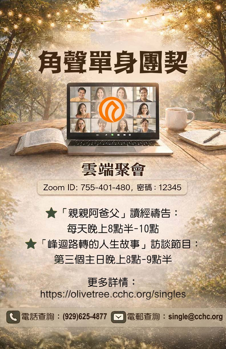 單身的旅程不必孤單前行。「角聲單身團契」是一個溫暖、安全、真誠交流的屬靈社群,透過每日讀經禱告、生命故事分享與彼此陪伴,讓你在信仰與人生路上有人同行。無論你是剛信主、尋找屬靈成長,或渴望建立真實關係,這裡都歡迎你加入,一起在神的愛中成長與被建立。