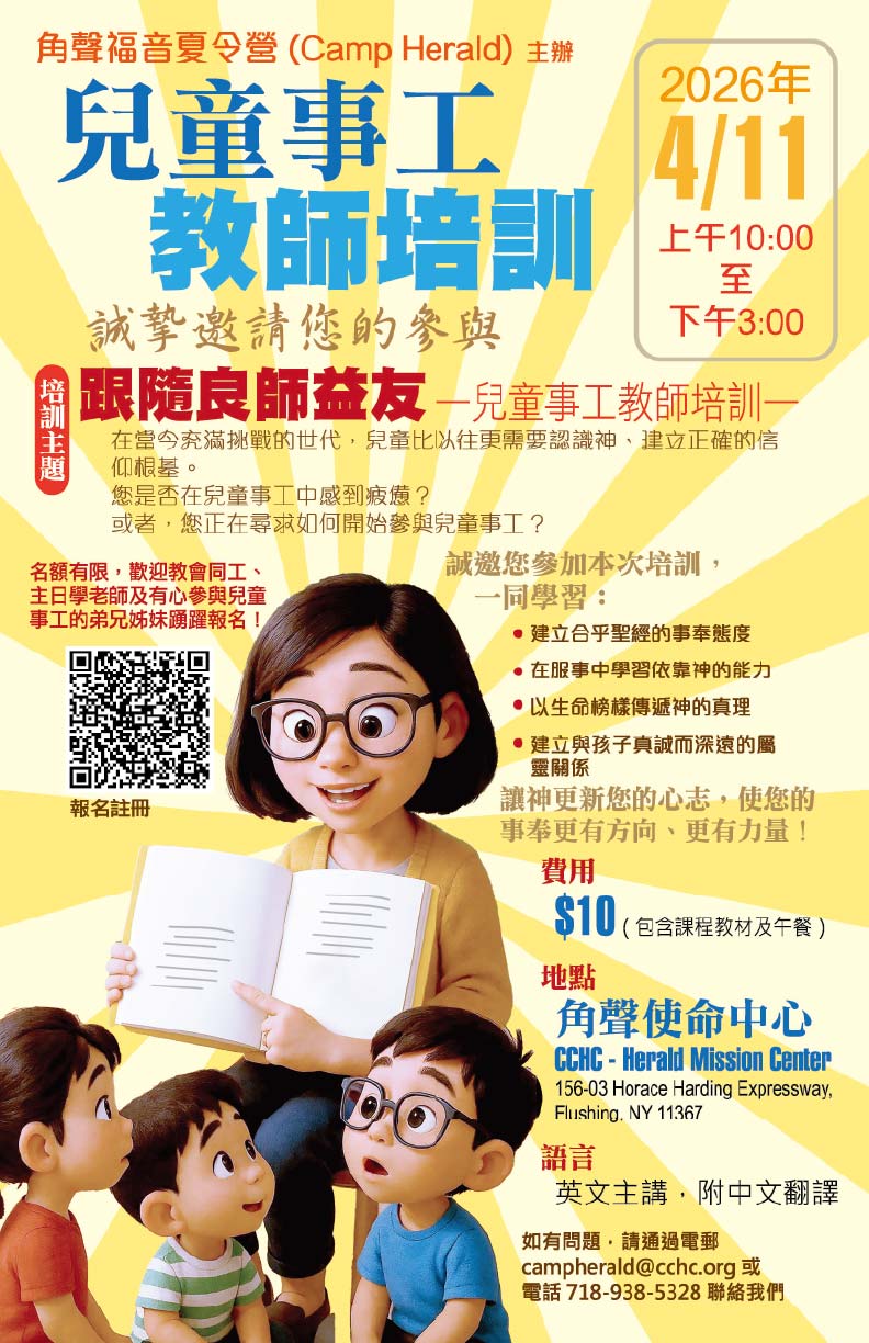 歡迎主日學老師及有心服事兒童的弟兄姊妹參加。